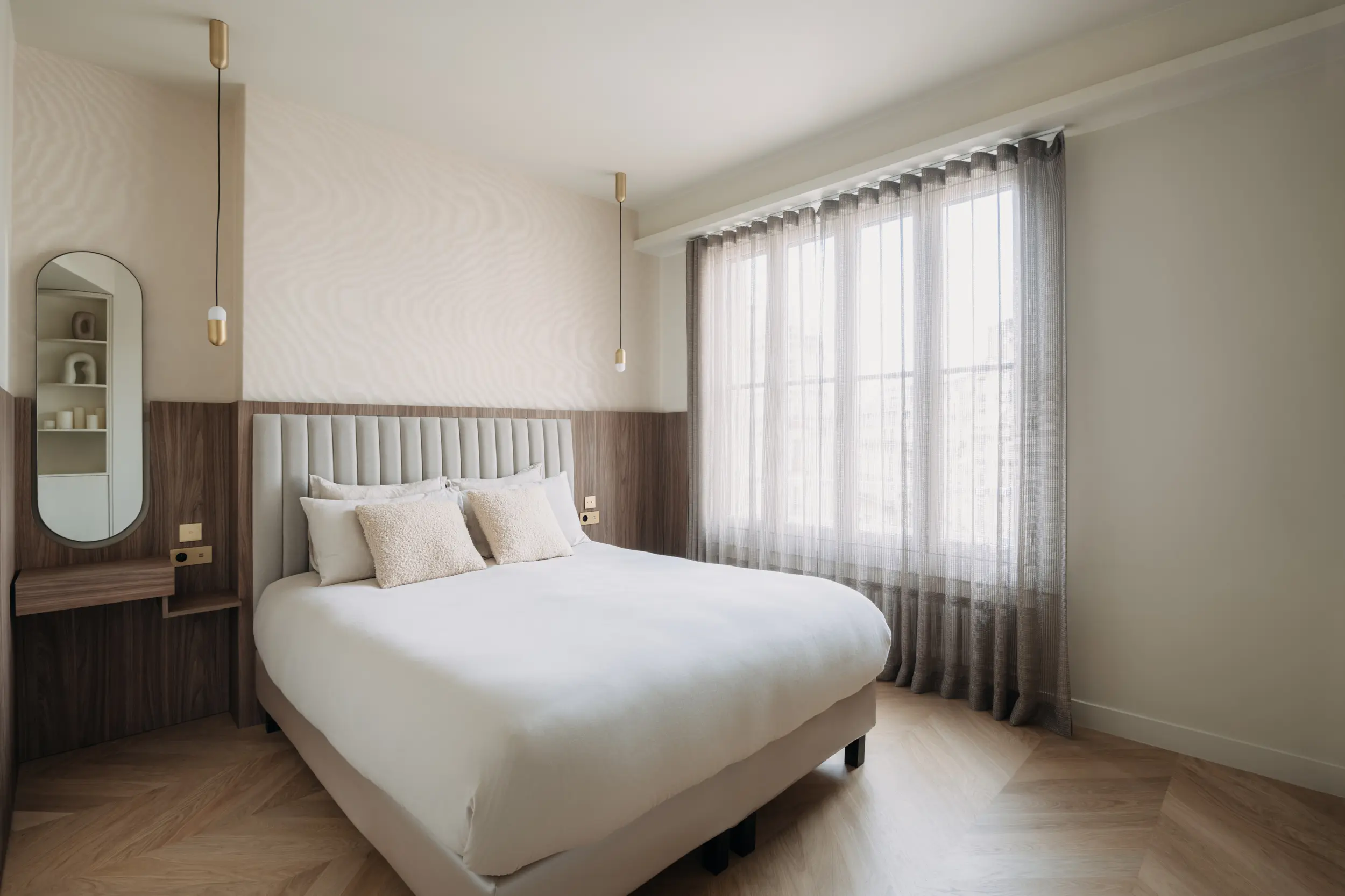 Restructuration d'un appartement familial aux tons clairs et matières nobles